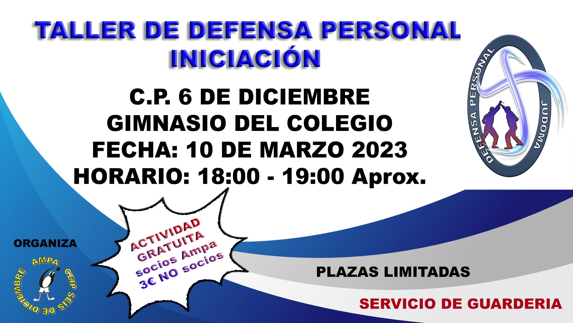 Desde Club Judoma, entidad que realiza la actividad de Judo en el centro, nos ofrece un taller gratuito de defensa personal para las familias asociadas. El próximo viernes 10 de marzo de 18h a 19h en el gimnasio del colegio. Se ofrecerá un servicio paralelo de cuidado de menores para las familias que lo necesiten. El taller será para 20 personas.